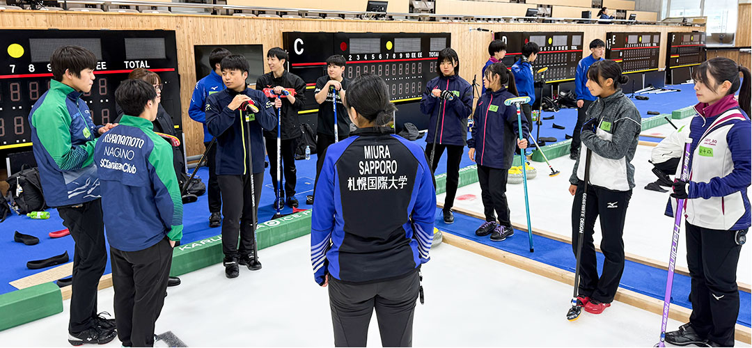 今年はソルトレイク・トリノ・ソチオリンピックで活躍し、現在日本カーリング協会のナショナルヘッドコーチを務める小笠原歩コーチ、SC軽井沢クラブ所属の山口剛史選手と小泉聡選手、KiT CURLNG CLUB所属の臼井慎吾選手、札幌国際大学所属の三浦由唯菜選手が講師を務めました。
