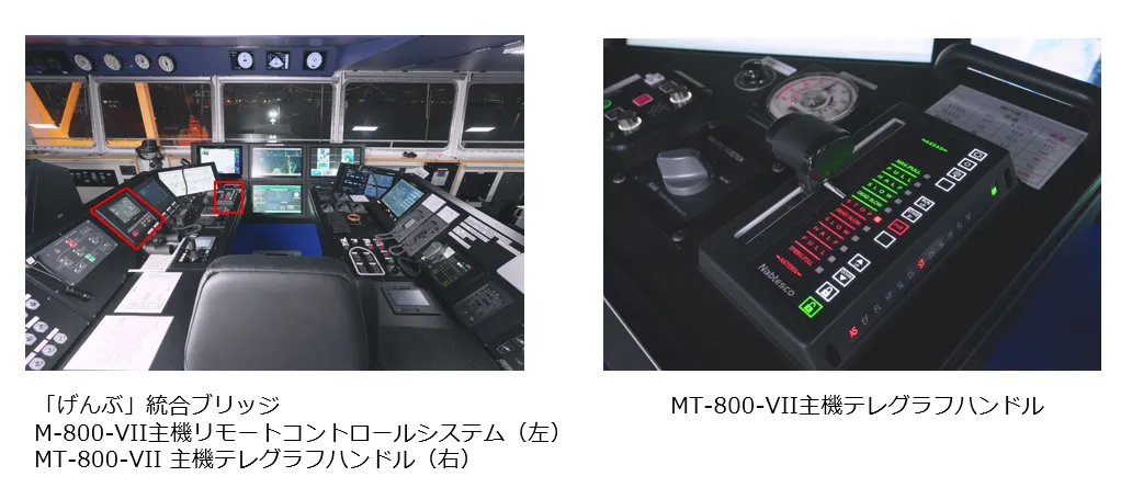 当社は、MEGURI2040第1ステージでは、DFFAS+の前身となるDFFASコンソーシアムに参画し、航海域の船速制御装置の開発を担当しました。今回のMEGURI2040 第2ステージでは、無人運航機能を全て備えた新造コンテナ船「げんぶ」において、航海域の船速制御に加えて、離着桟時の主機、舵、スラスタを統合制御する自動操船コントローラー(Drive Train Controller: DTC)の開発を行いました。
